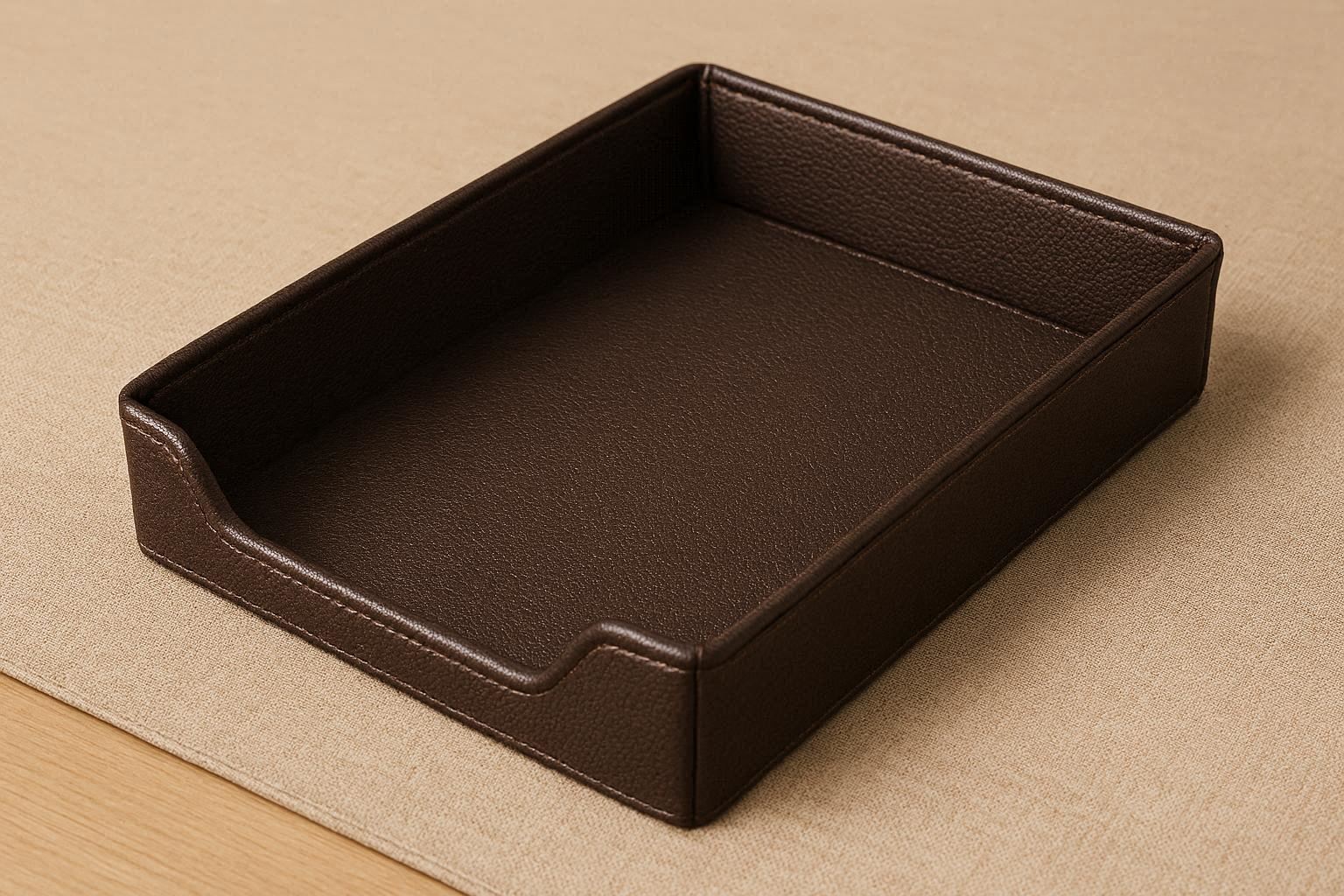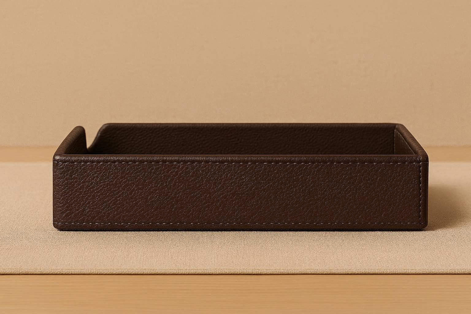 Measuring 14 x 9 inches with a low profile, it sits neatly on any desk surface without taking up excessive space. The faux leather is bonded to a rigid MDF base, ensuring the tray maintains its shape. It is easy to dust and spot clean with a damp cloth.