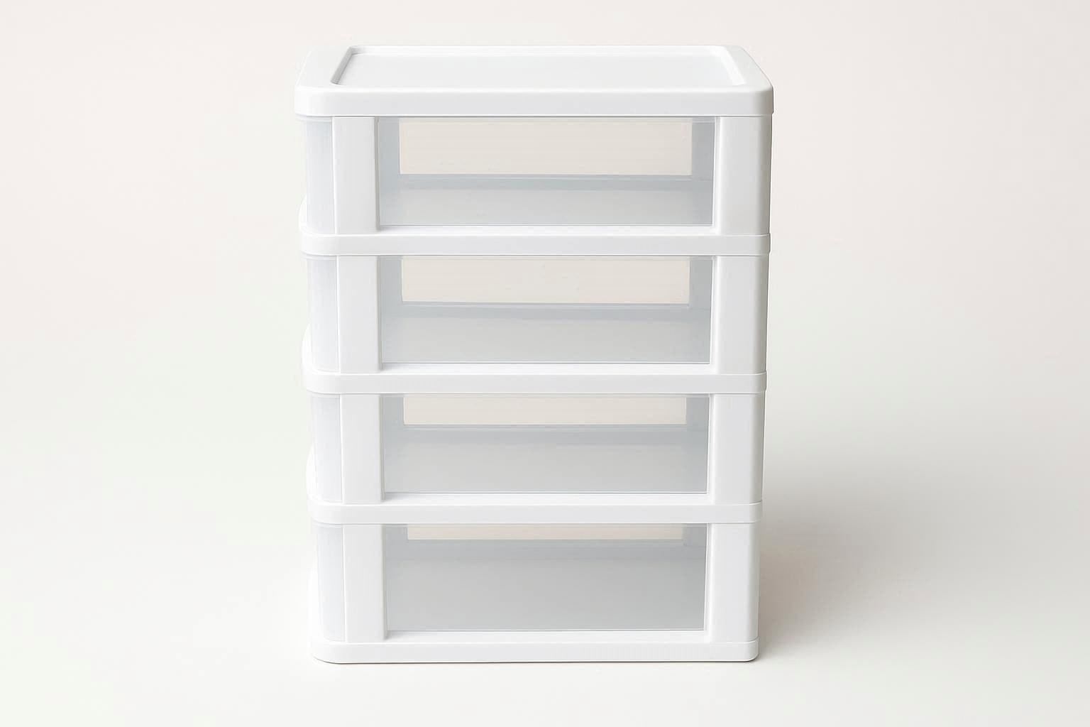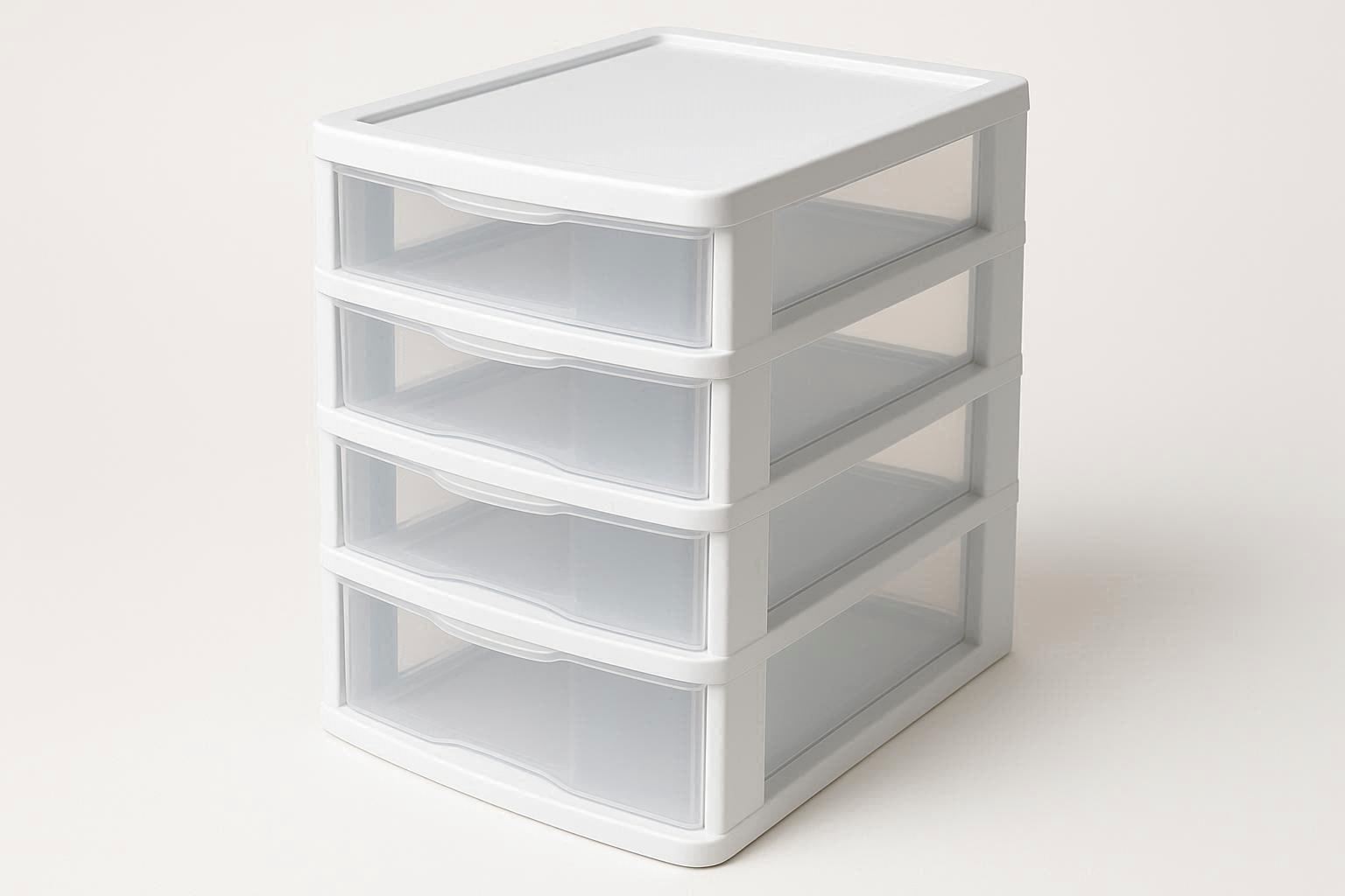Maximize vertical storage with this versatile set of stackable plastic drawer units. Each unit contains three or four small, smooth gliding drawers within a lightweight yet sturdy plastic frame. The drawers are transparent or tinted, allowing for quick identification of contents like craft supplies, hardware, makeup, or electronic accessories.